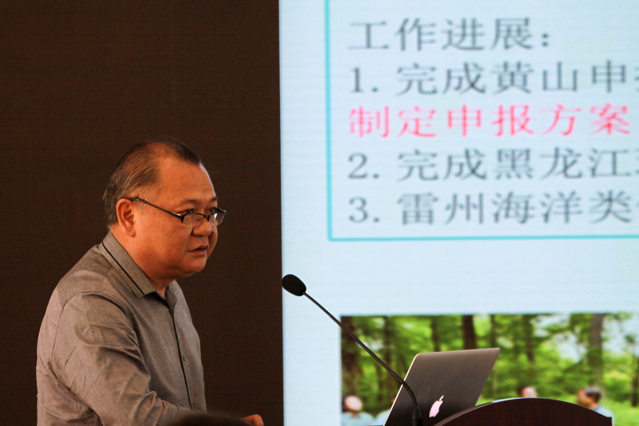 中国人与生物圈国家委员会秘书处秘书长王丁研究员汇报秘书处2015-2016年的工作进展。(摄影:郭晓涛)