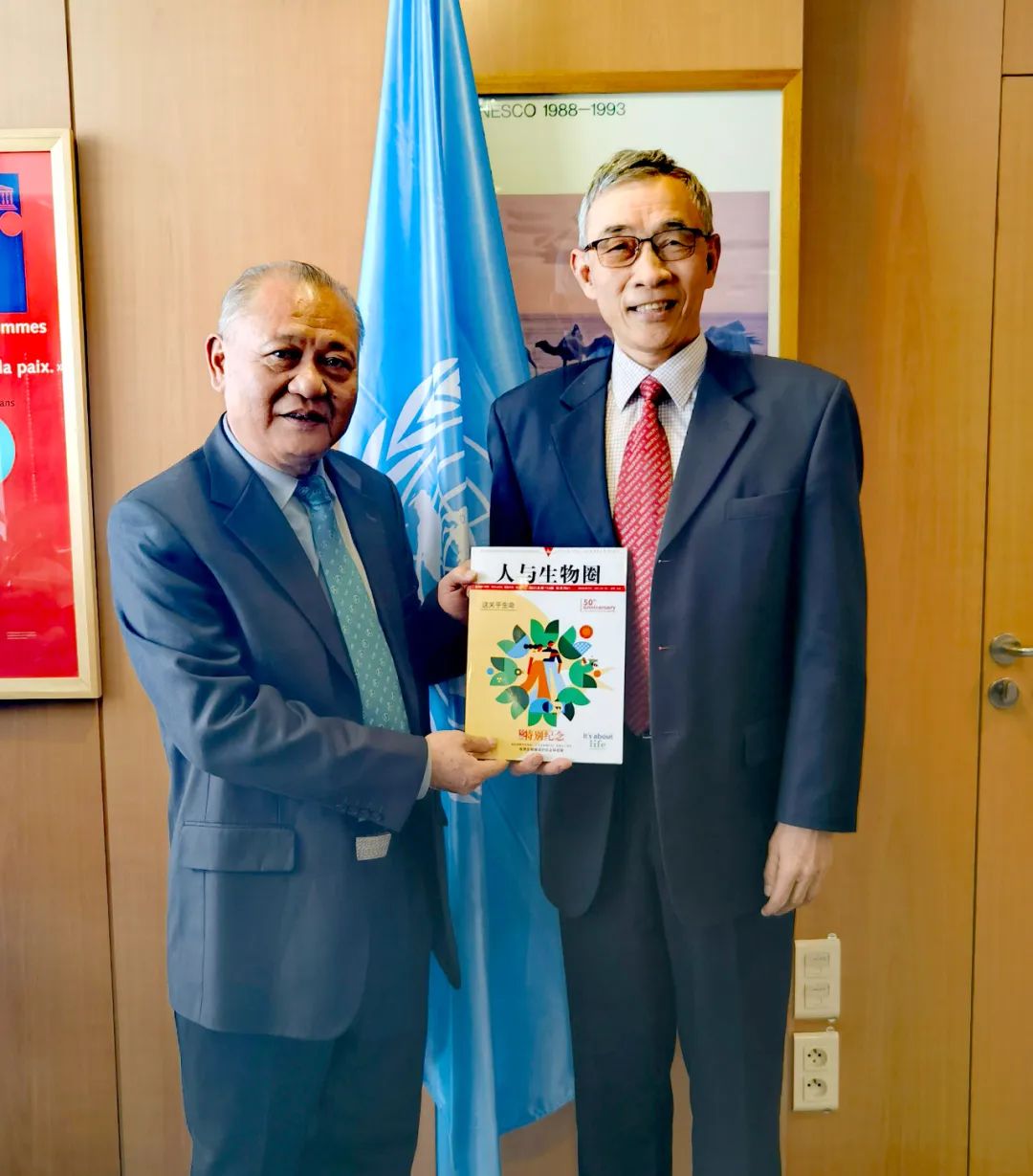 王丁秘书长会见法国MAB负责人并向其赠送《人与生物圈》杂志“南美科考”专辑