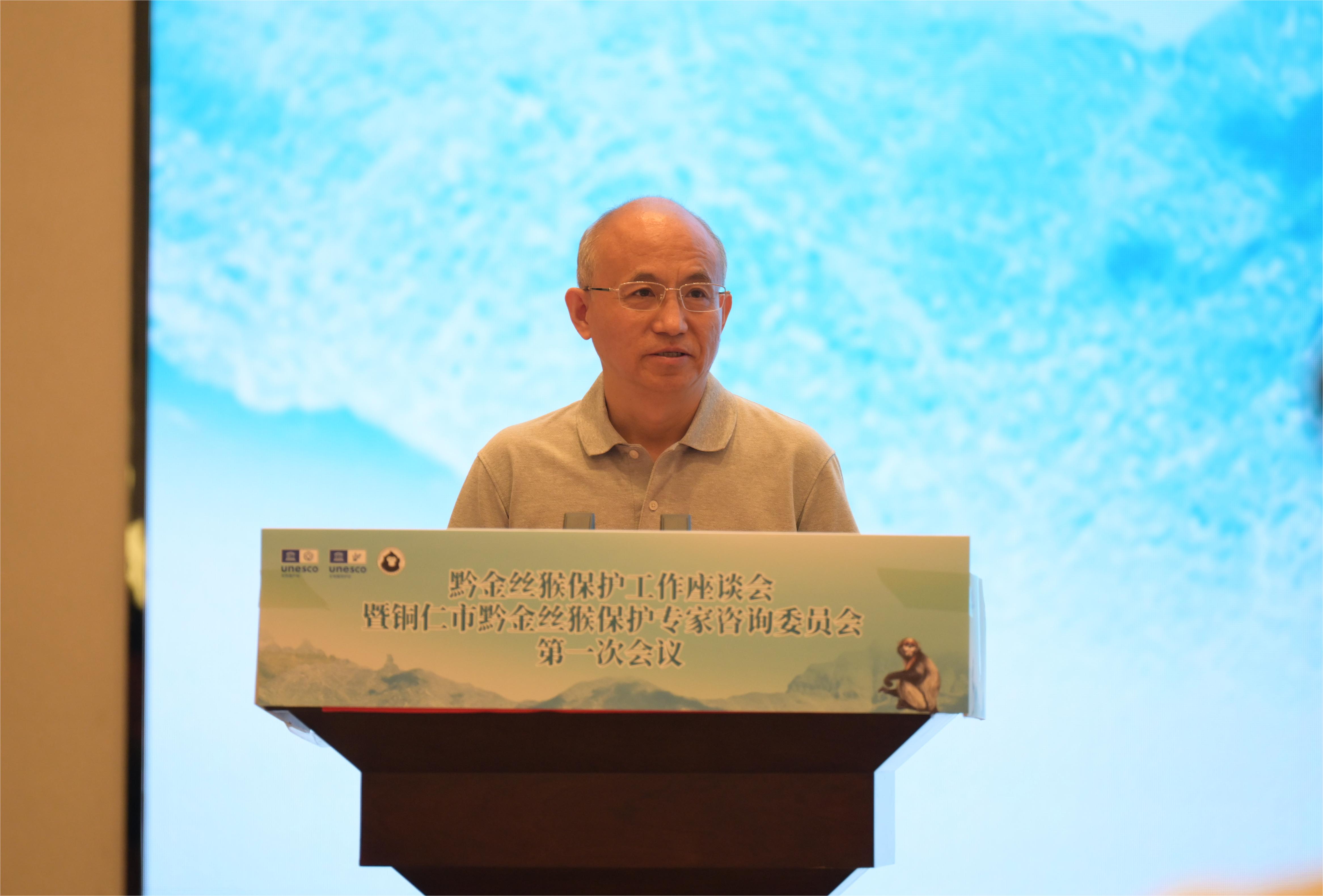 2024年9月7日,黔金丝猴保护工作座谈会暨黔金丝猴保护专家咨询委员会第一次会议在梵净山世界生物圈保护区召开。中国科学院原副院长、中国科学院院士、中华人民共和国人与生物圈国家委员会主席、黔金丝猴保护专家咨询委员会首席专家张亚平出席并致辞。
