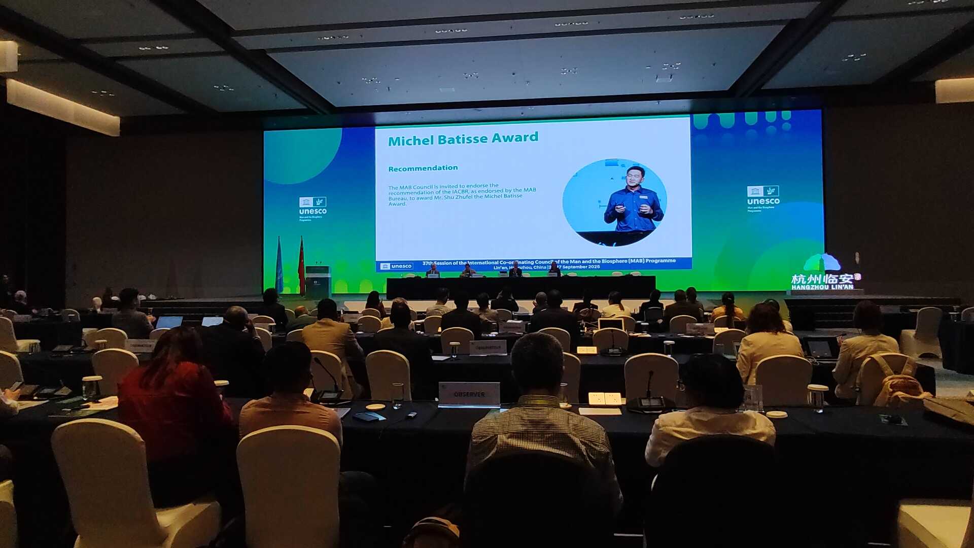 束祖飞作为中国代表团成员受邀参加“人与生物圈计划”国际协调理事会第37次会议,并在现场收到获奖的喜讯