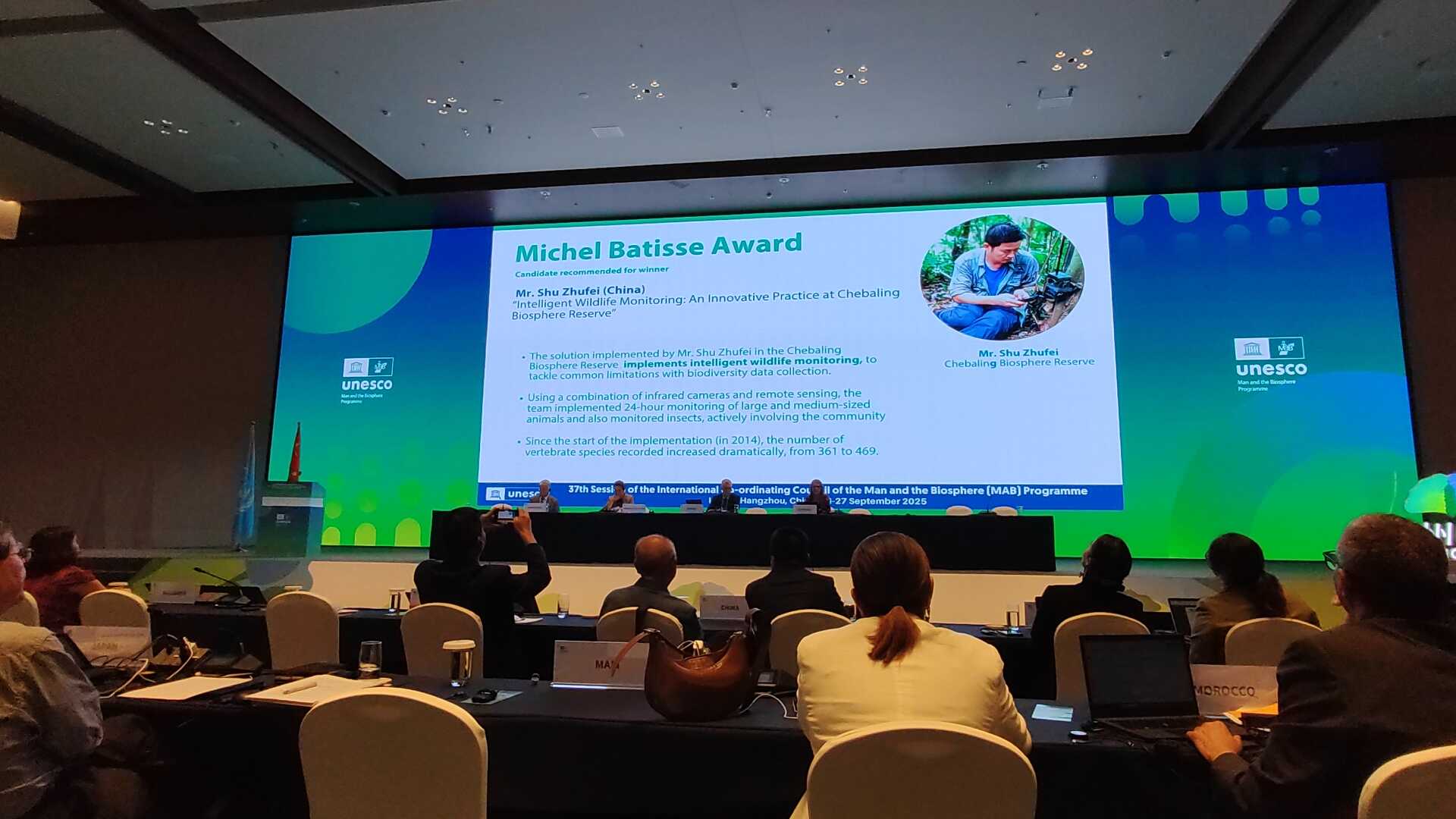 2025年9月26日至27日,联合国教科文组织“人与生物圈计划”国际协调理事会第37次会议在杭州临安召开。广东车八岭国家级自然保护区管理局局长、中国生物圈保护区网络“青年创新小组”组长束祖飞荣获联合国教科文组织“米歇尔·巴蒂斯世界生物圈保护区管理奖”,以表彰其通过成功运用智能化野生动物监测系统,创新性地统筹了生物多样性监测与社区发展。