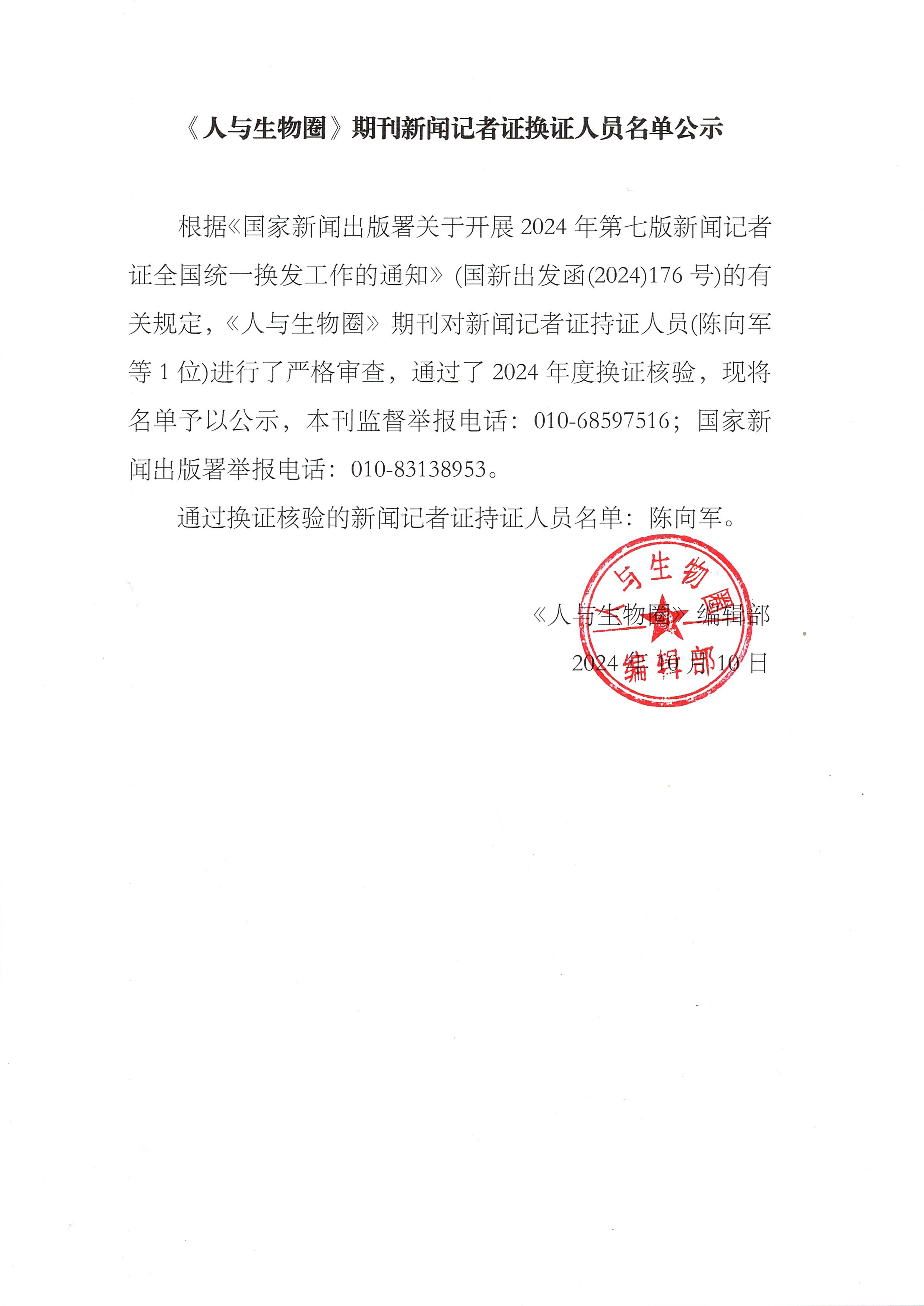 《人与生物圈》期刊新闻记者证换证人员名单公示